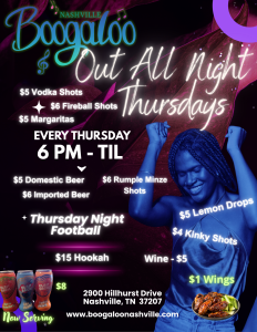 Unlike the crowded tourist bars downtown, Boogaloo is Nashville’s hidden gem — a laid-back dive-style bar where locals come to relax, enjoy hookah, sip affordable drinks, and grab delicious bar food. Come for the food & drinks. Stay for the vibes. Experience Boogaloo.